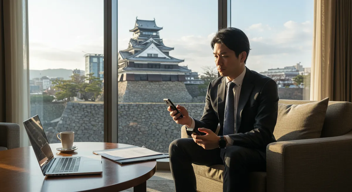石坂セイヤ(30)は、地方創生会議の合間に、ホテルの窓際でスマホを開いていた。