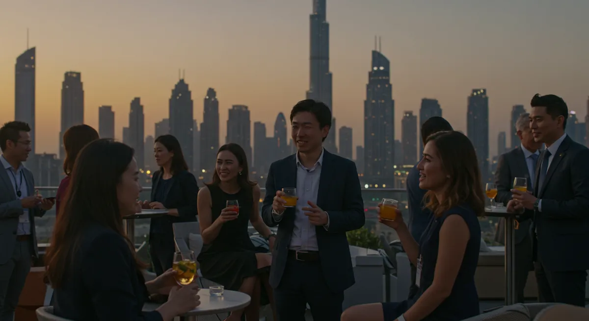 とあるルーフトップバーで、海外バイヤーたちとカジュアルな打ち上げが行われていた。