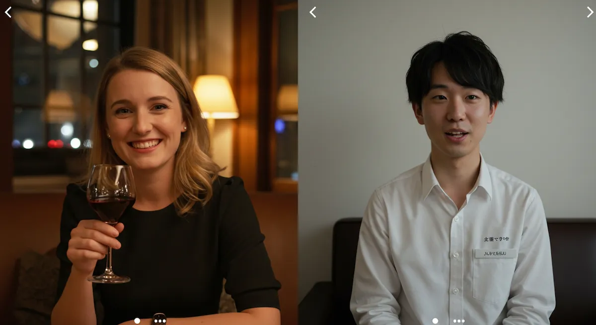 画面の向こうに現れたのは、グラス片手の白人女性キャスト。