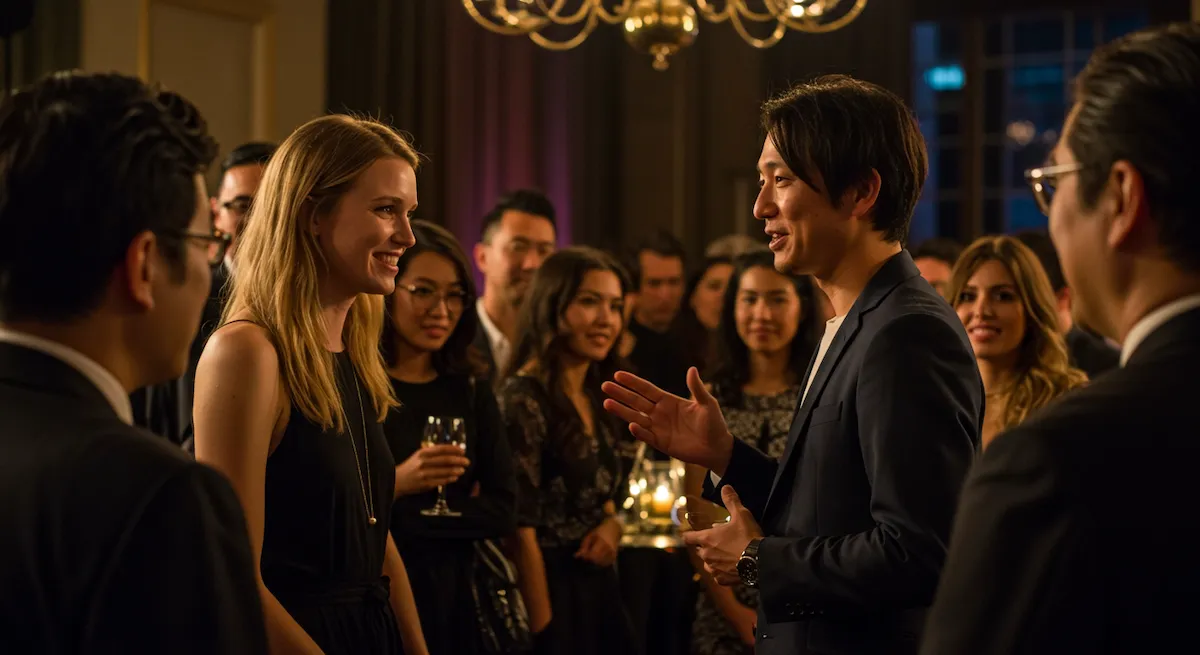 乾杯のあと、隣にいた女性モデルが彼に話しかけた。