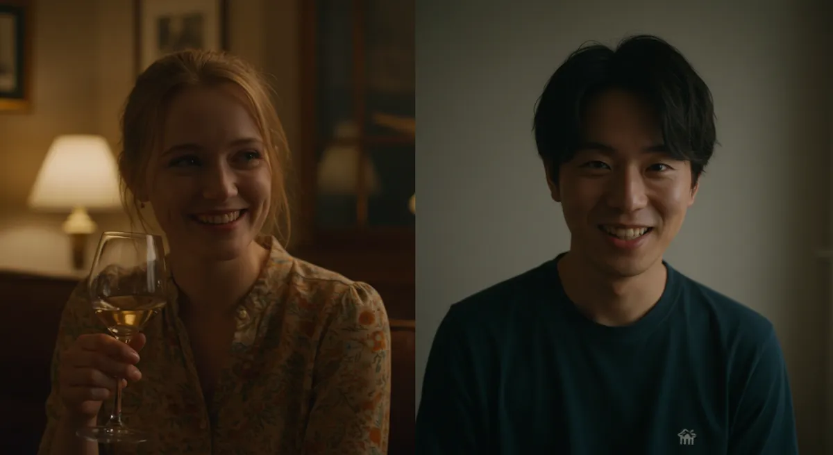 画面の向こうに現れたのは、ワイングラスを持つ白人女性キャスト。
