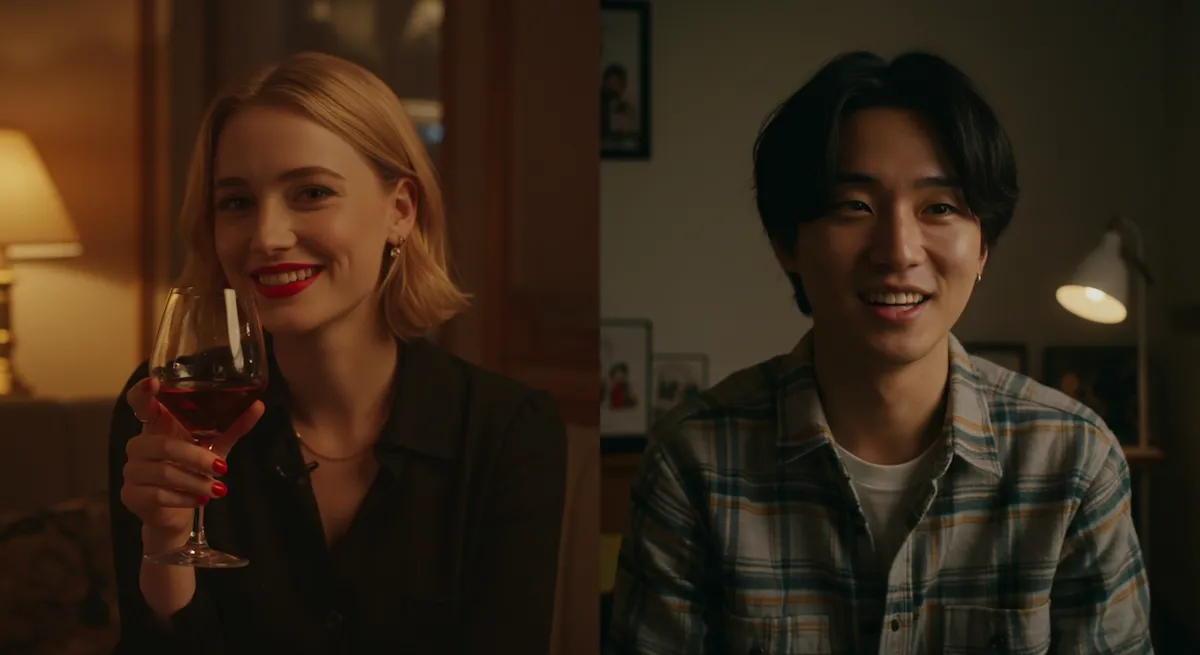 画面に現れたのは、ワイングラスを片手にした白人女性キャスト。