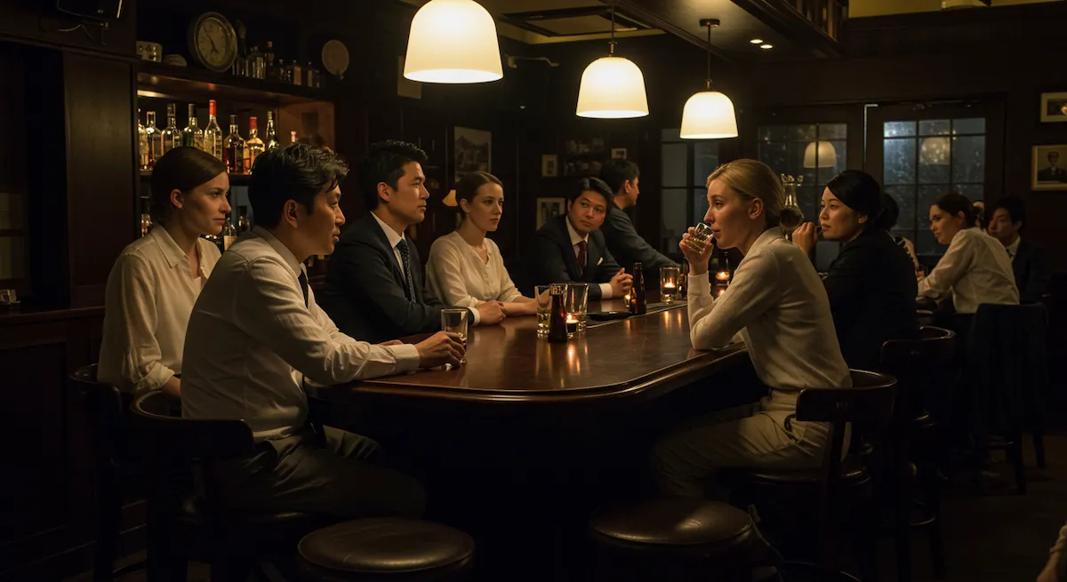 重厚な木のカウンターにグラスが並び、経営者たちが次々と新規事業の話題を交わしていた。