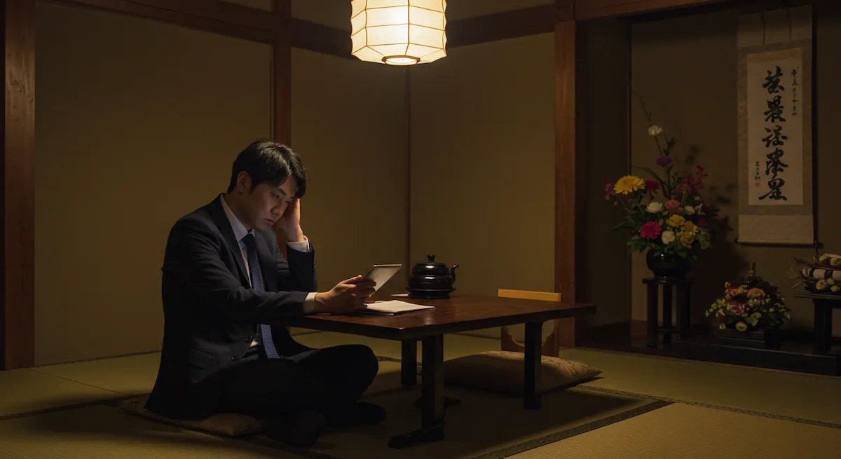 親族の祝賀会が終わり、床の間に飾られた掛け軸をぼんやりと見つめながら──
